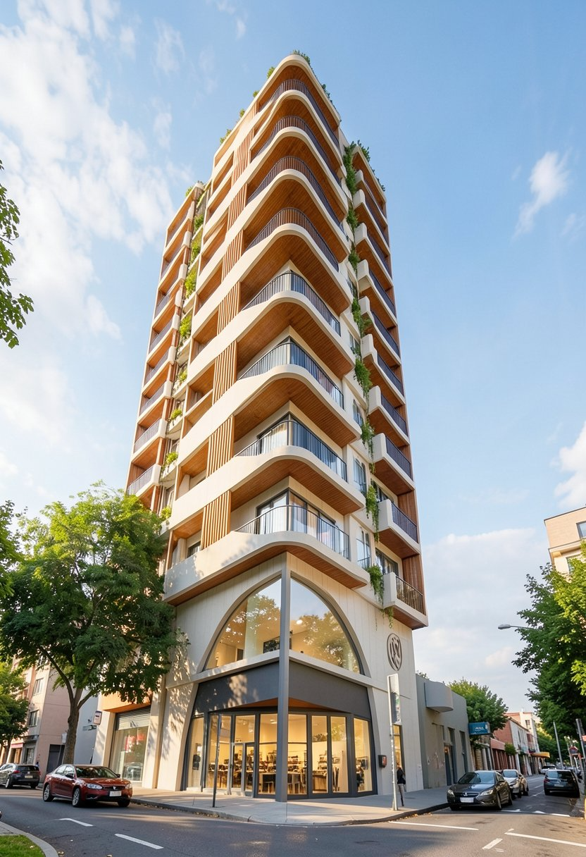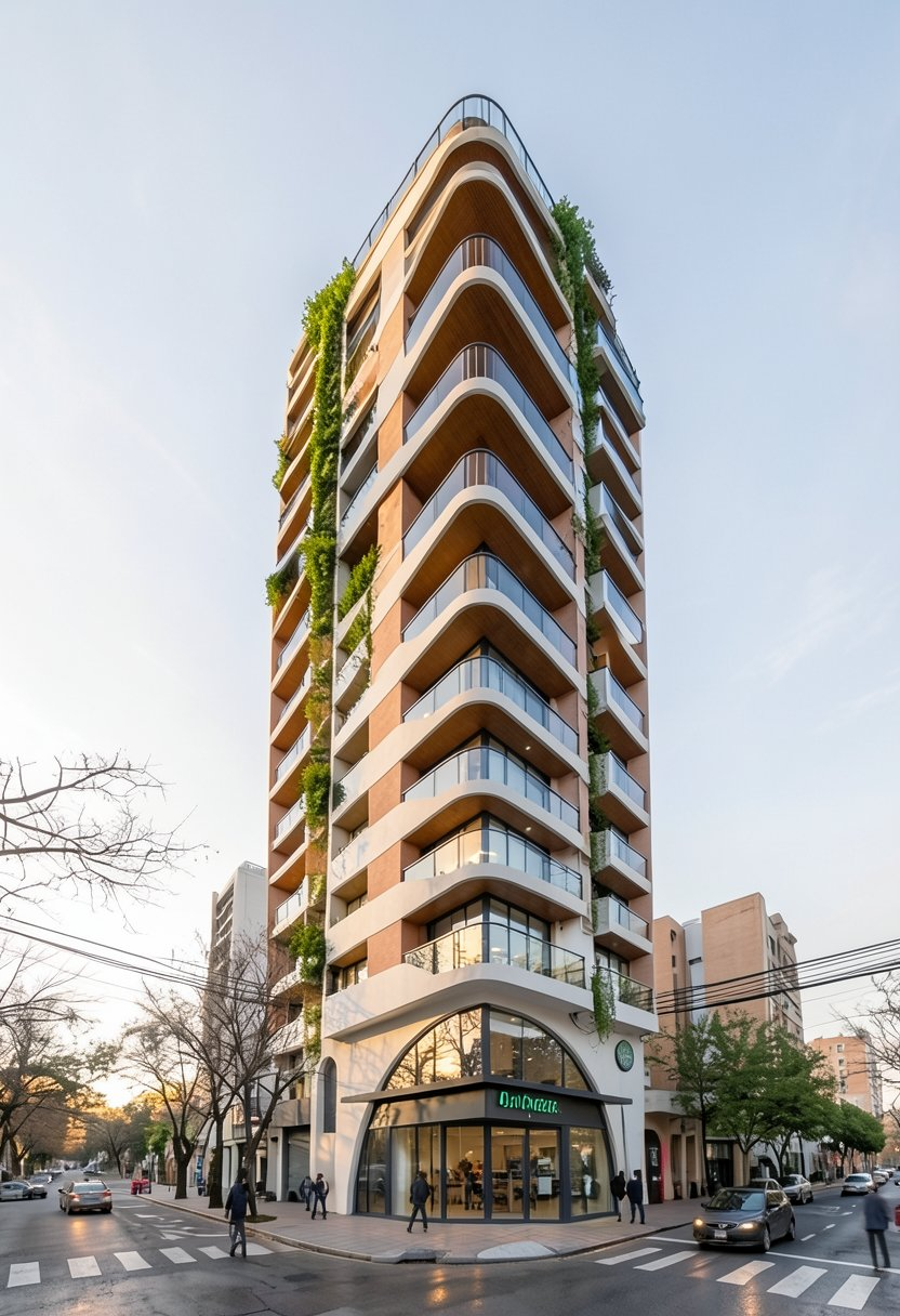 Edificio Cafferata se ubica estratégicamente en Cafferata 898, en el dinámico barrio Echesortu de Rosario, Santa Fe. Este edificio de departamentos con local comercial aprovecha un lote en esquina de 125.57 m² para crear una propuesta arquitectónica innovadora que redefine el skyline del barrio.